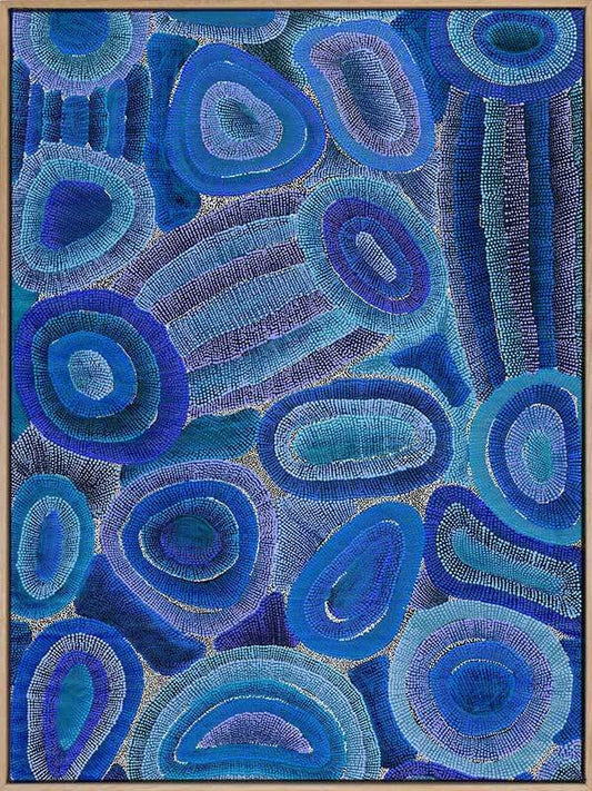 Ngapa Jukurrpa IV Blue Canvas Aboriginal Art Print - Agnes Nampijinpa Brown