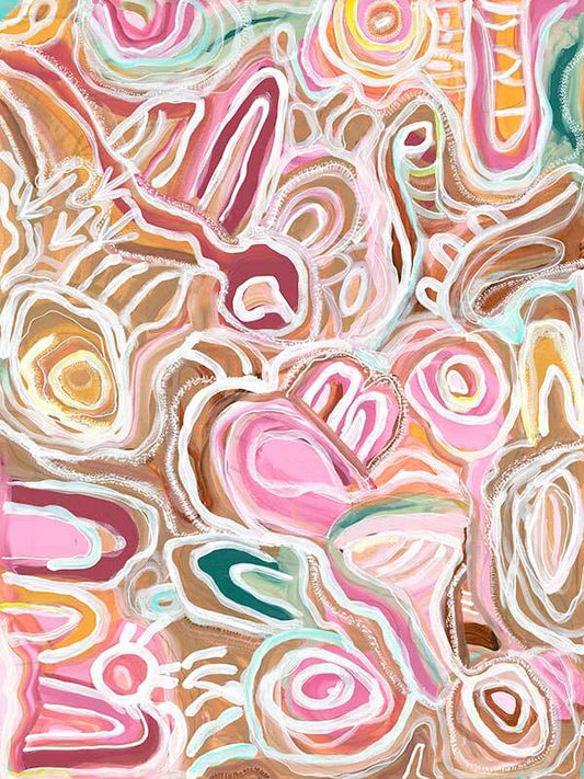 Connection to the River Blush Pink Canvas Aboriginal Art Print - Joedie Lawler