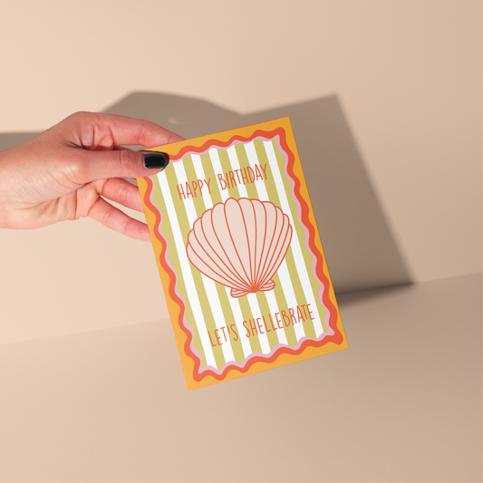Quokka the Rocker - Happy Birthday Let’s Shellebrate CARD - shell Green Stripe